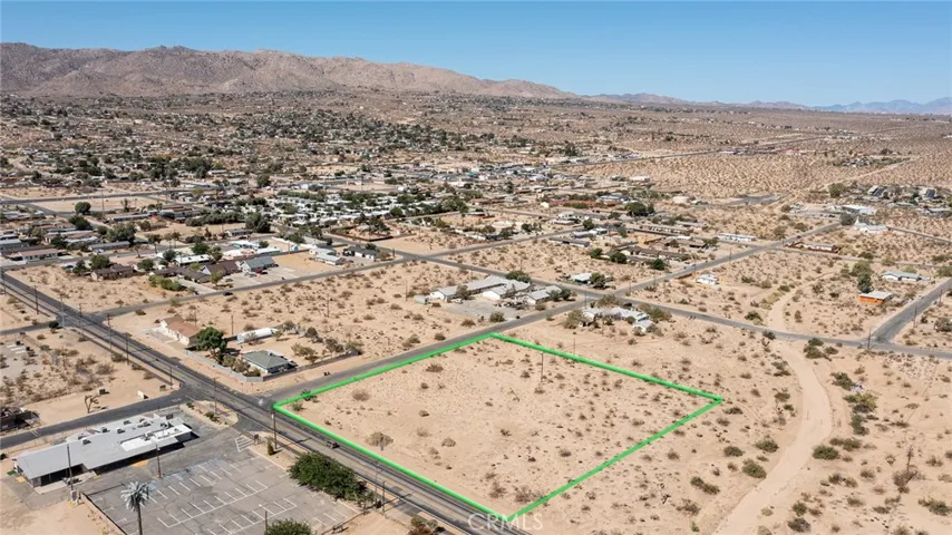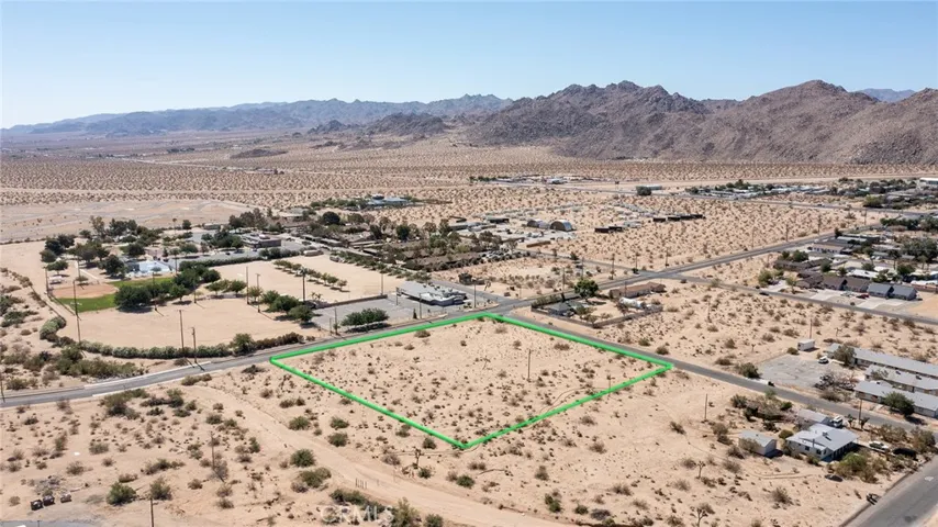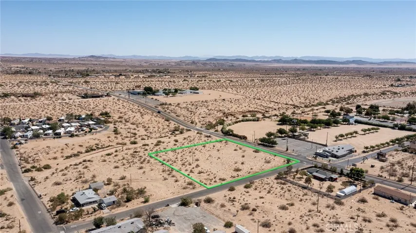 Located directly across the street from the Sportsmans Club of Joshua Tree and Autocamp Joshua Tree. Parcel has access to water and electricity. Per Seller, property can be used to build a multi-plex (buyer to investigate with SB County). Seller will carry a note: $59k Down Payment, then seller will carry a $100k @ $2,000 payments per month, interest @ 7.42% amortized over 5 Yrs, but complete Balloon Payment is due in 2 Years. Green lines demarcating boundaries are approximate; street address is not official – do not use to GPS to property. Locate with APN: 0603-271-06