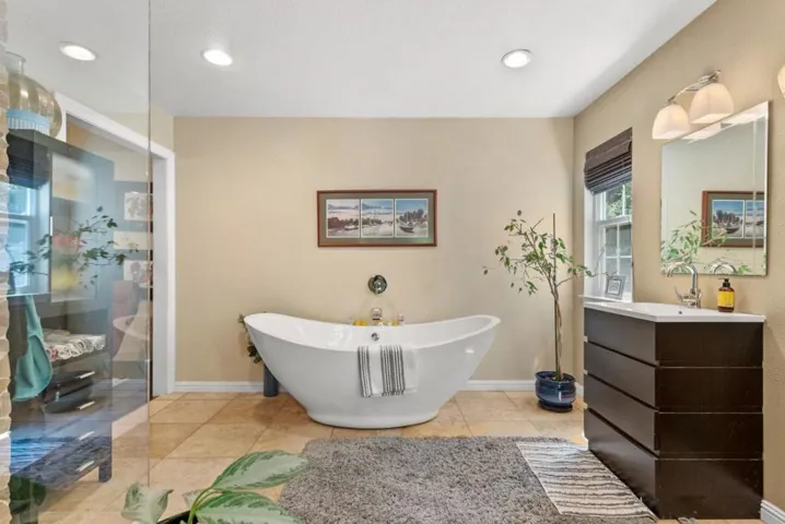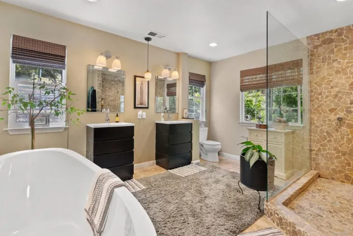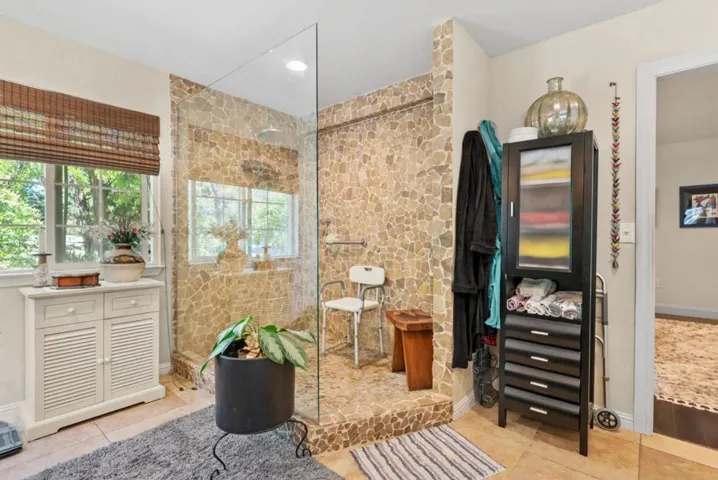 Come on in and take a look at this gorgeous 3 bedroom, 2 bathroom home sitting on nearly 2 acres! Private, secluded, and remodeled, this home is perfect for any family. Driving in, you are greeted with a gated entrance and spacious outdoor front patio. After entrance, you will find an open concept family room/kitchen, perfect for hosting and entertaining. The kitchen features granite countertops, custom cabinetry, stainless steel appliances, and a range hood that drops over the island. In the family room, you will find 3 oversized windows that overlook a massive, green, landscaped backyard. The primary suite is spacious, offering an abundance of natural light, an oversized walk in closet, and a gorgeously remodeled master bathroom with an oversized shower, stand alone soaking tub, and separate vanities. The other two bedrooms are located conveniently next to the full guest bathroom. Walking to the deck outside, there is a jacuzzi tub and plenty of space to host guests and entertain.