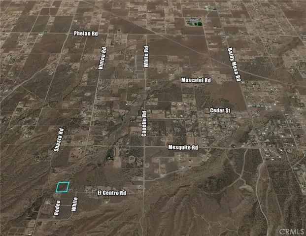5 ac (gross ac) vacant lot on El Centro Rd in SE Phelan, about 1/2 mile West of paved Capelin Rd. Easy access off Baldy Mesa Rd from Phelan Rd or Mesquite Rd coming through Oak Hills. Water line on El Centro.