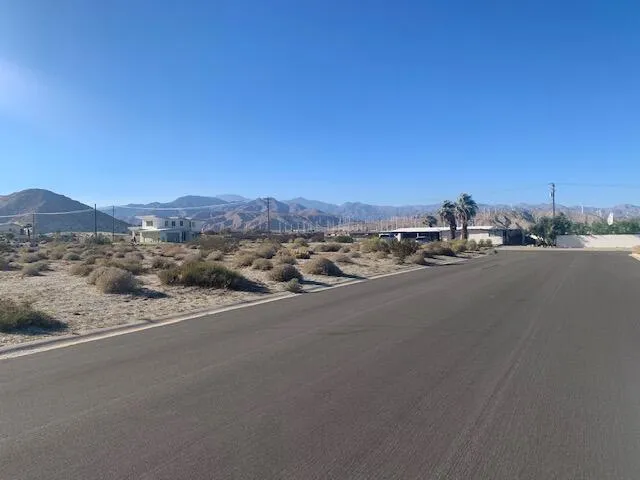Awesome Mountain Panoramic Views.Less then 10 mins from Downtown Palm Springs, ( carries the 92262 Zip code and Services) also approximately 10 degrees Cooler then PS. 5 mins to I-10 for easy Westward travel.This level flat view lot is ready for development -on a paved street, close to electric & water.San Jacinto Cove was an early MID- C Home development area.Variety of housing is permitted.