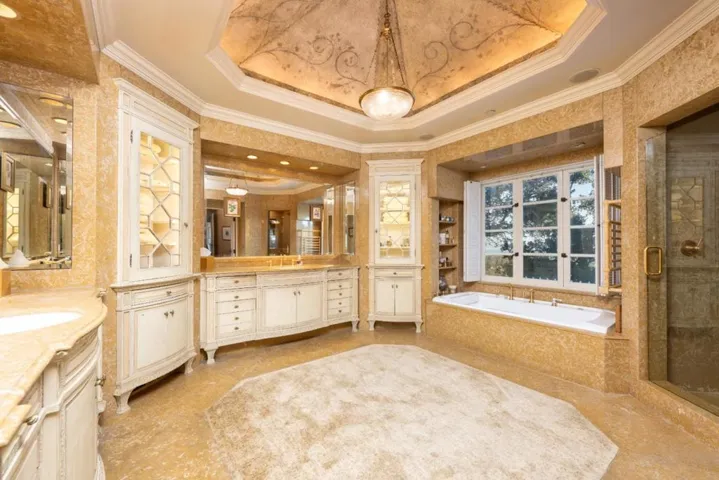 Situated on a private side street, this grand estate sits on a majestic 2-acres with jaw-dropping panoramic bay views, some of the best in all of Hillsborough. Exquisite architectural detailing and finishes throughout, including inlaid parquet walnut floors, hand carved fireplaces, and walls of glass framing iconic bay views and landscaping. The main level includes a stunning office, billiard hall, and the “Morocco Room” lounge. Upstairs, the large master suite enjoys equally stunning views of the bay, in addition to a luxury spa bath and formal sitting room. A separate in-law suite and wine cellar with tasting room are located on the lower level of the residence. Equally impressive are the surrounding grounds, fully landscaped with grand-scale trees, expanses of manicured lawn, and an elevated terrace overlooking the views and swimming pool. All of this just minutes from shopping, dining, golfing, parks, and top rated Hillsborough schools. (Square Footage Per County Records: 8,629)
