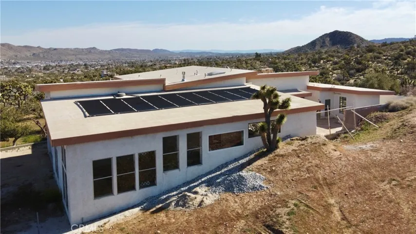 Your resort vacation home awaits. This home is stunning! With 3 bedrooms, 4 bathrooms as well as additional living areas, Oh, and did I mention the indoor solar heated, salt water swimming pool and spa? This home has been family owned from its creation. Split level design for separate spaces for endless options. Create your own private sanctuary or have endless entertaining possibilities. The flow and separate areas will allow for both private and resort style living. This home sits on 2.5 acres. Property is mostly flat and usable, with majestic Joshua Trees as well as other indigenous vegetation. Home has its own private well with Pelican full house filtration system, and an additional well which provides water for the pool and plants. Many well thought-out updates have taken place so the home is move in ready for yourself, and or guests. Updates include; individual mini splits in each bedroom, fresh exterior paint on the eves and fresh fog coat on the house with a fresh scrub/stucco on the exterior retaining walls. Snow coat on roofs 6 years ago with a touch up 1 month ago. New window screens, latches, and glass door locks. A complete remodel of the lower level which adjoins the swimming pool, makes it fully functional for social gatherings and or retreats. Exterior features include an attached 2 car garage as well as additional rustic outbuildings. Bring your horses and toys, the space is here. Plenty of BLM land nearby.