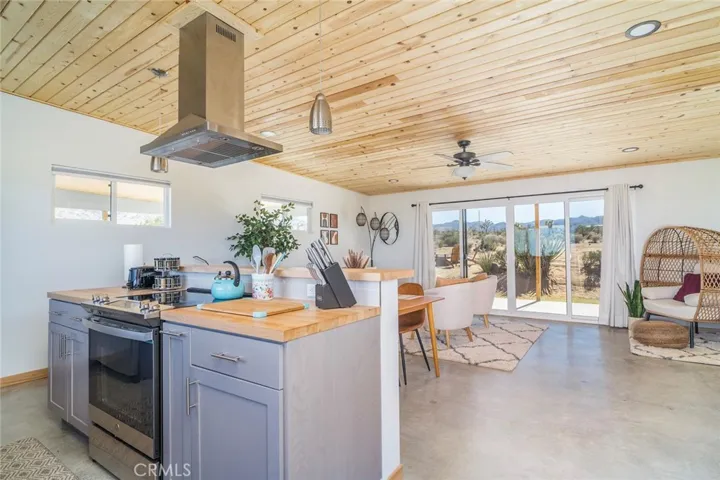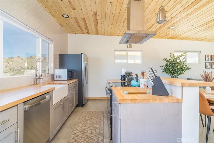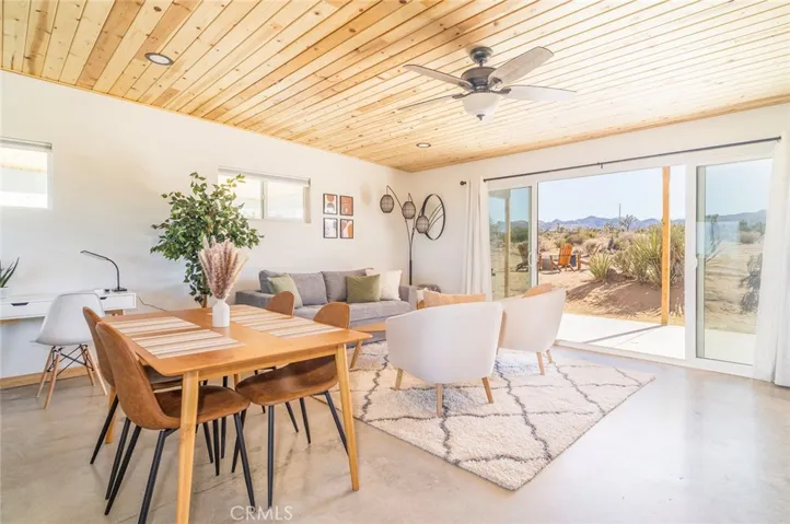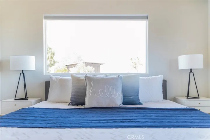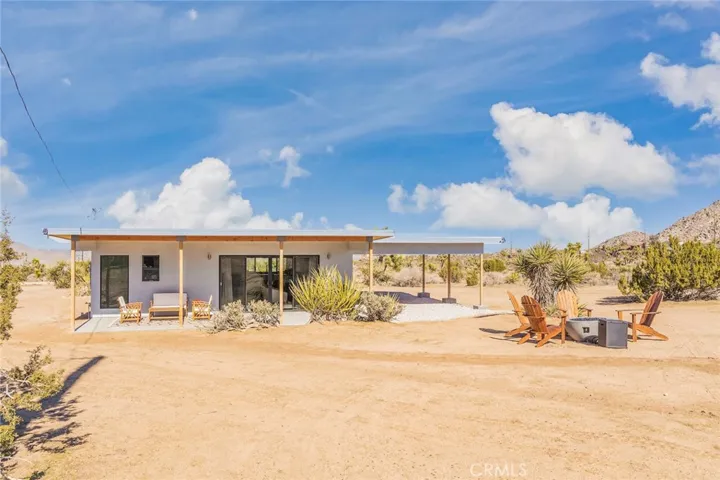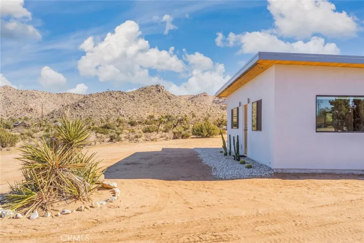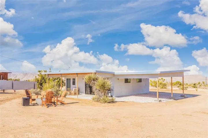 Quintessential Desert Star: Complete Rebuild – Stripped to Studs, Fully Remodeled, Fully Permitted, New Plumbing, New Electrical, New Roof, Polished Concrete Floors, New Sheetrock, New Stucco, ALL NEW SURFACES and APPLIANCES. Combined with careful craftsmanship and high-end design details, you’ll find why this home makes for a great vacation rental or cozy primary residence. Picturesque views of the desert mountains and protected Joshua Trees out of every window! True beauty lies in the acre of land the home sits on. The natural desert landscape is left for those who appreciate its natural state and for its new owners to explore and feel the tranquillity of this special place on earth. This supreme location offers seclusion but not total isolation.