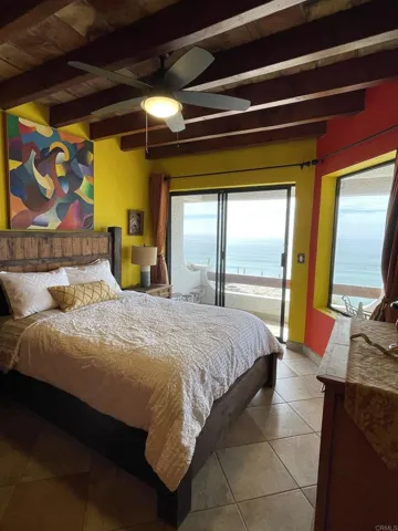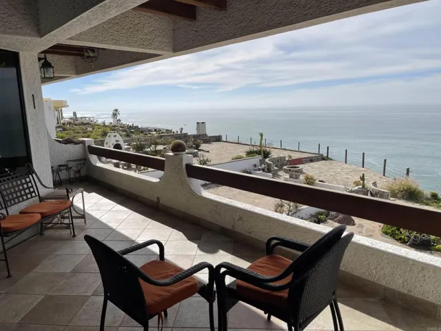 Turn key furnished oceanfront Condominium. This incredible property is located at a front ocean location in South Rosarito in the State of “Baja California, Mexico, 45 miles south of the San Diego California border to Mexico. it is on the second floor of a three levels building,3 bedrooms, 2 Bathrooms, ceramic flooring throughout, highly upgraded, custom ceiling fans and lights, kitchen and bathrooms tops, one bathroom has a tub with massage whirlpools, unobstructed views to the Pacific Ocean. vaulted ceilings throughout, design with traditional Mexican style and Decor, large barbecue area, new appliances including tank less water heather,1 car assigned space, gated private community with 24/7guard,pool,Jacuzzi, Tennis courts, parks and more awaits for you at “Plaza Del Mar”