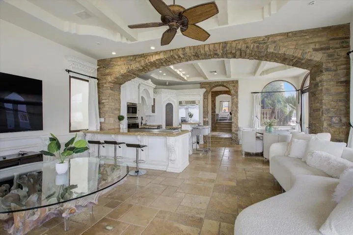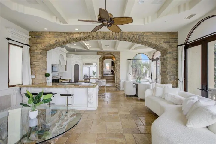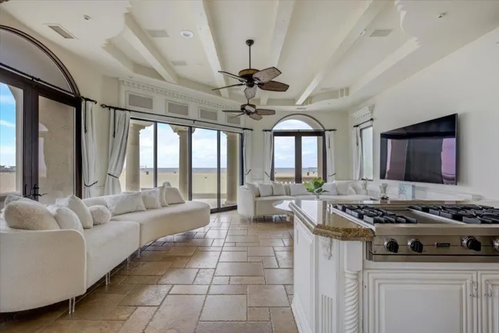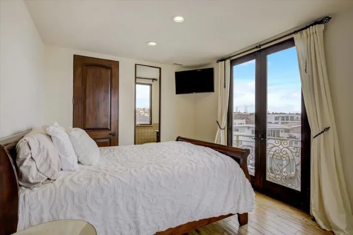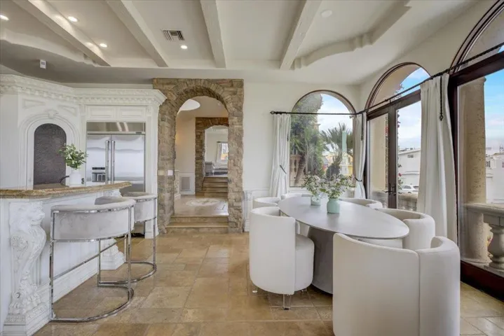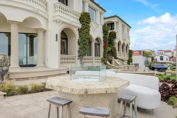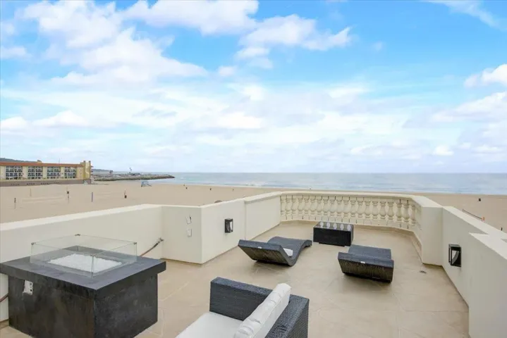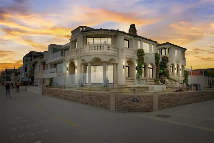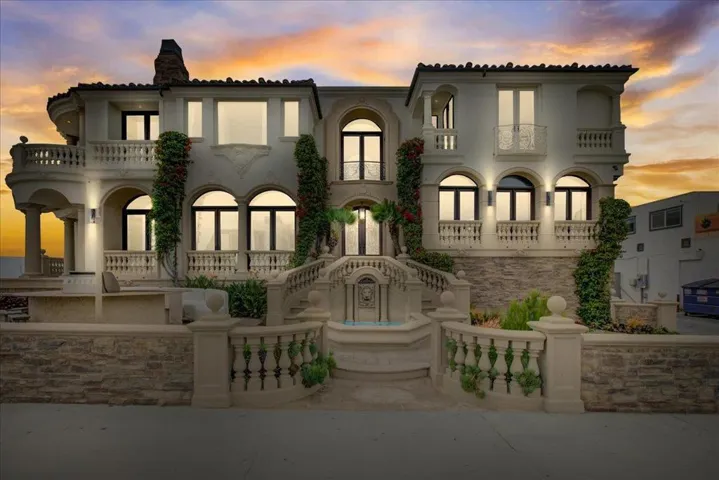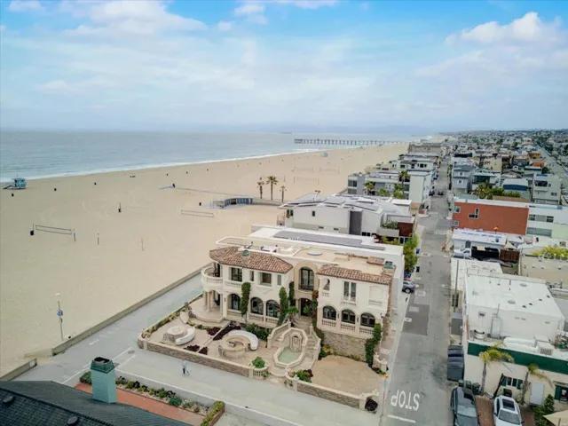 Italian Villa meets California Coastal! Thoughtfully designed with 5 beds and 4.5 baths on nearly 4000 sqft, this home is ideal for entertaining guests while watching the sunset over the Hermosa Beach horizon from almost every room. This three story home features stone laid archways, marble and walnut hardwood flooring, a pool table room, rooftop lounge and five parking spaces. The main level brings you into the expansive living area that’s open to the gourmet kitchen, dining room and leads you out to the beachfront patio. Opened by the retracting glass doors, the patio has a built-in barbeque, fire pit and fountain; perfect for entertaining on the Strand. The circular staircase or elevator will take you to the top level that includes two guest suites and a large primary suite with a walk-in closet, private ocean view deck, double marble sinks, walk-in shower and hot tub. Downstairs on the first level, guests have ultimate privacy with two additional guest suites, a laundry room and 2 car garage with a storage room. Located in the heart of Hermosa Beach and right on the Strand, it’s a short stroll or bike ride to Hermosa, Redondo or Manhattan beach piers. This stunning luxury home and a true landmark on the Strand awaits the most discerning buyer to enjoy.