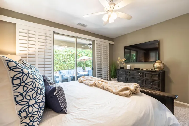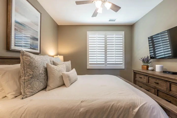 (Available for 2025 -2026 SEASON 3 months or more). Escape to Trilogy at the Polo Club, where modern design meets desert serenity. This stylish home offers 2 spacious bedrooms, 2 full bathrooms, and a cozy den with a sofa bed, perfect for accommodating up to 6 guests. Whether you’re here for relaxation or adventure, this home is an ideal base for your desert getaway.With 1,386 square feet of open concept living space, this home features beautiful tile wood floors throughout the common areas and large windows that invite natural light in, creating an airy and warm atmosphere. The contemporary design provides a fresh and inviting space that feels like home.The kitchen is fully equipped with all-new appliances, including a gas cook-top with a griddle and a convection/air fryer oven along with elegant granite countertops. Whether you’re preparing a simple meal or entertaining, this kitchen has everything you need to make cooking and dining a breeze.The master suite is a true retreat, offering a peaceful atmosphere with dual vanities and a walk-in shower. After a day of exploring, this space provides the perfect setting for relaxation and comfort.Step outside to your own private backyard, where you can unwind in peace. The covered patio features a BBQ and outdoor dining area, ideal for enjoying meals al fresco. Lounge in comfort with cozy outdoor chairs, enjoy a TV for watching the latest games or your favorite shows. The fire pit adds a cozy touch for evening gatherings under the stars and indulge in s’mores by the fire. The beautifully maintained desert landscape creates a calm, natural setting to relax in.With all the comforts of home and the beauty of the desert landscape, Trilogy at the Polo Club is the perfect getaway destination.