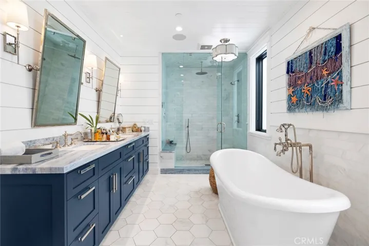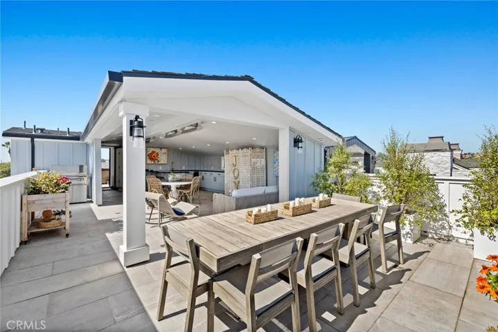 Ascend to the third floor to find two exceptional rooftop deck areas. One boasts a covered loggia and kitchen space with panoramic views of the Bay and Fashion Island, while the other faces west and offers a perfect spot for a spa. The rooftop entertaining area features a kitchen bar with heated lights , and plenty of outdoor space and seating ideal for hosting gatherings or relaxing under the stars.