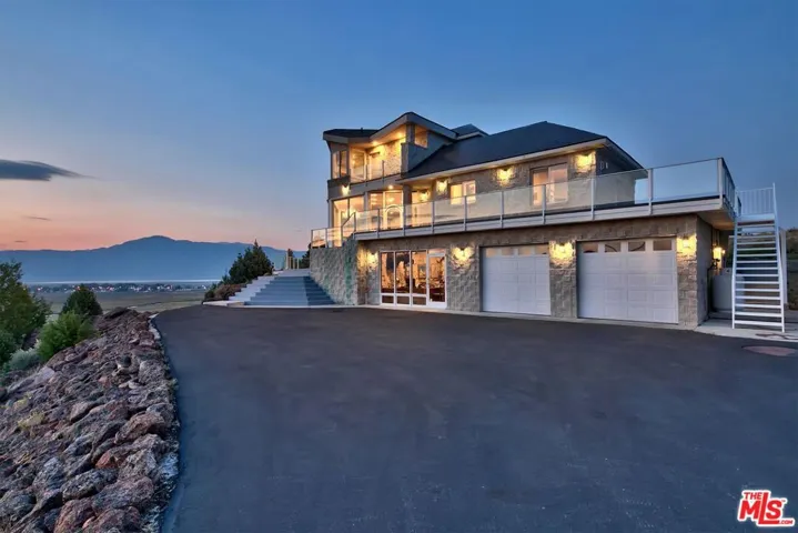 Please note that a few images have had furniture digitally removed to showcase the space and layout better. Located on top of a scenic bluff with amazing panoramic views and perfectly placed on over 6 acres, with floor-to-ceiling windows offering stunning panoramic views of the Eastern Sierra. No expense was spared from Travertine Italian tiled heated floors to an imported Waterford Crystal Chandelier. This rare and remarkable residence features 3,240 sq ft, 3 bedrooms/ 3.5 Baths, and a Full-Sized Office. Each bedroom has an ensuite bathroom and Hand-Picked tile accents. The powder room has been remodeled. There is an attached ADU/Caretaker unit with a full kitchen, full bath, and its own separate entrance and deck area. Downstairs (access via stairs or the elevator) is a spacious Office that also has an exterior entrance. There are plenty of built-in storage cabinets throughout. Full-sized Washer and Dryer laundry area, a Rustic Secure Wine Cellar, Utility/Mechanical room, and access from the oversized two-car attached garage on the main level. Kitchen renovations and upgraded features include Leathered Granite countertops, a Floor-to-ceiling pantry, all Stainless-Steel appliances, including a gas (propane) five-burner, a double oven, a spacious built-in microwave, dishwasher, and a trash compactor. You can access the primary bedroom retreat by using the 3-story elevator or ascending the columned river rock stairway. Imagine waking up to panoramic, majestic views from bed. The Floor-to-ceiling windows frame spectacular vistas, bringing outdoors inside with unparalleled views of Bridgeport Valley, Matterhorn Peak & The Sawtooth Range behind Yosemite National Park. The home is equipped with Electronic blinds on both interior & exterior, allowing for control of lighting and temperature while providing a sense of privacy. A backup generator, two propane tanks, city water, a septic tank, two water heaters, frost-free water faucets, and surround irrigation. Truly, a one-of-a-kind property. The historic town of Bridgeport, located in Northern California, is a perfect destination for outdoor enthusiasts. Whether you enjoy fishing, hiking, horseback riding or simply taking in breathtaking views, Bridgeport has something for everyone. The town boasts a rich history and friendly residents, making it a wonderful place to live. There is an airport in town, and popular ski destinations like Mammoth Mt, June Lake Mt, and Lake Tahoe are nearby. As well as the East entrance to Yosemite National Park. * Fire safety features are a top priority for many homeowners today. This property includes a 25,000-KW generator and a fire hydrant on-site. The home is constructed with cinder blocks and steel beams to enhance fire protection. Additionally, it features a copper metal roof equipped with lightning rods and exterior sprinklers for added safety. There is also a cement wraparound deck that offers 360-degree views. The home is Listed Under The Appraised Value.