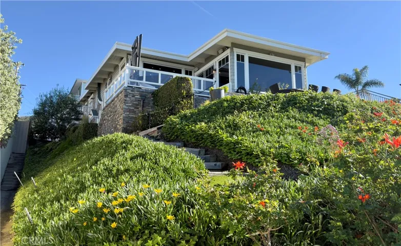 JUST REDUCED TO SELL! OCEANFRONT, Direct Beach Access home with expansive lot overlooking the Coastline, with panoramic views of the crashing surf below. Inspired by the Coastal Homes of Sag Harbor and the Hamptons, this 3 bedroom, 3 1/2 bath Beach House is fully remodeled and beautifully appointed with all designer-selected furnishings included for a turnkey purchase. Generous living and dining areas open to oceanfront patios and a large grass yard with BBQ and outdoor entertaining areas. The mostly flat (nearly quarter-acre) lot overlooks Tablerock Beach with lovely gardens and yard areas, perfect for lounging and sea-gazing. This “beachy-chic” home features a chef’s kitchen with bar seating and ocean view dining areas, offering an authentic culinary experience with high-end appliances, an Italian stove, a center island, and plenty of workspace for informal or formal dining service. Three bedrooms with designer finishes and full baths complete the main level. An office area and another bathroom with a step-in shower are conveniently situated at the front entrance. This quintessential oceanfront Beach House is ideal for primary or second home living and also features a two-car attached garage and Central AC. The South Laguna Bluffs location, at the end of a quiet cul-de-sac, is just steps from the South Laguna Village area, with access to the shops and restaurants and just five minutes from downtown Laguna Village galleries, entertainment, and art festivals. This is a must-see home!