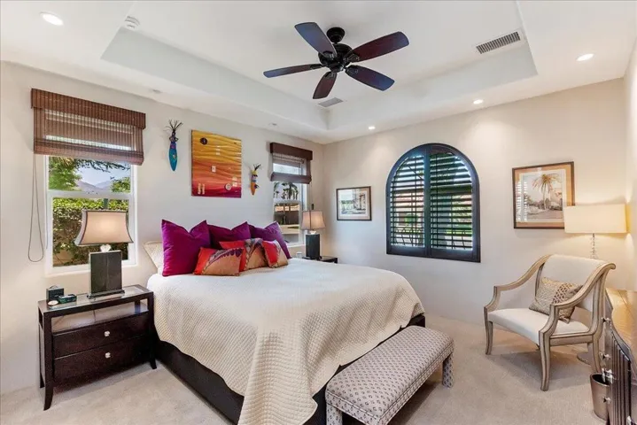 Enjoy a little piece of paradise in this renovated Montana 1 with panoramic views of the 10th hole of Jones course in Rancho la Quinta. This 4 bdrm 5 bath cornerstone of tranquility is fiercly intentional about your privacy and comfort. This luxurious home is complete with 3 bdrms inside and a large detached casita complete with a King bed and small kitchenette! The spa inspired bathrooms and a gourmet chefs kitchen all combine to supercharge your senses while blending the natural peace from a desert living experience. Now available for LEASE – Oct, Nov, Jan and April!