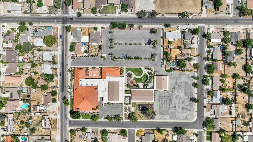 REDUCED! Unique opportunity to purchase 5.49 acres with in-place facilities in a desirable residential area of Hemet. Currently operating as a Church and Zoned S1, the site can utilize the benefits of California SB 4, enacted in 2023 that streamlines housing developments on certain properties and exempts them from environmental review. This applies to sites owned by either religious or educational institutions and must be 100% affordable housing. The law calls for the approval process to take place 90 days after application submission. Surrounded by R1 residential properties the site currently includes 5 buildings totaling 41,403 sf with parking for 223 vehicles and landscape improvements. The property has 296 feet of frontage to Buena Vista Street, 597 feet of frontage to Wesley Place, 230 feet of frontage to Thompson Street and 300 feet of frontage to East Mayberry Avenue with ingress and egress on all four streets surrounding the property. The site is mostly level and slightly above street grade. Existing improvements include planters, fountain, patios and concrete walkways and greenbelt with multiple structures.
