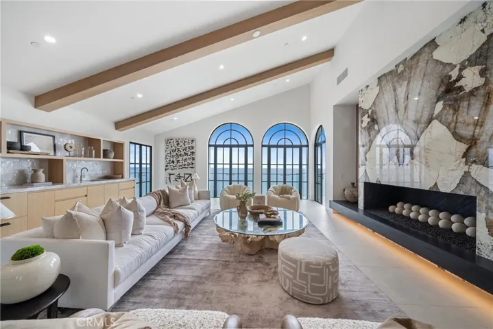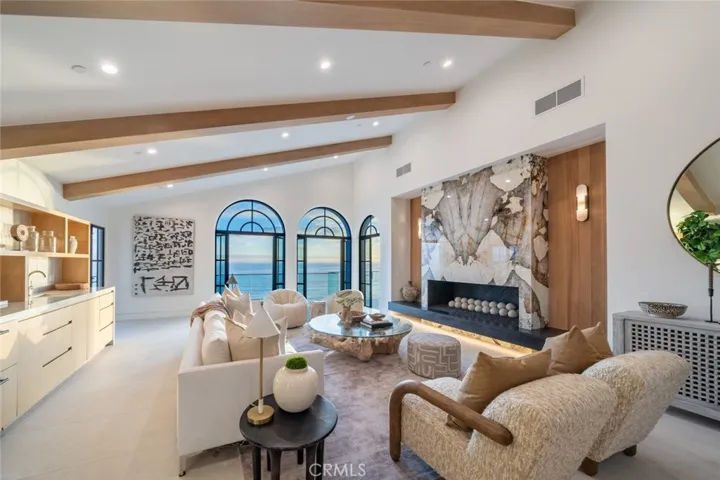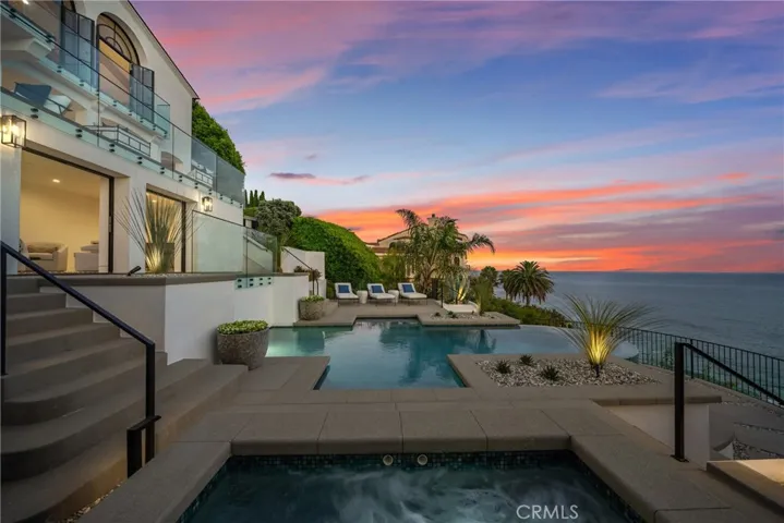 Perched majestically on a half-acre oceanfront bluff overlooking the beautiful Southern California coastline, 32101 Coast Hwy embodies the epitome of luxury Laguna Beach living. This stunning estate features panoramic white water, ocean, Catalina Island, sand, and coastline views. A one-of-a-kind home, it has been completely remodeled to the highest quality. A large bluff-top infinity pool with spa and pool house boast panoramic vistas: an architectural rarity that would never be approved if submitted today. This home was transformed into a contemporary Santa Barbara-style masterpiece by renowned architect James Conrad. Upon entry, the sprawling main level open floor plan immediately captivates with stunning panoramic ocean views. The main level features a spacious living room, dining room, gourmet chef’s kitchen, powder room, luxurious primary suite, and magnificent outdoor decks all designed to maximize natural light and ocean vistas. The seamless flow extends to the lower level, where a large family room opens onto the expansive deck overlooking the pool, spa, and ocean. The lower level features three bedrooms, three bathrooms with immaculate tile work, spacious laundry room, and direct access to the pool deck, seamlessly blending indoor and outdoor living. Additional interior touches include incredible custom tile flooring, with ceilings featuring white oak beams and tongue & groove design. Moving outside, lush landscaping and a fully remodeled pool, spa, and waterfall delight the senses. Additionally, the pool house features a beautiful bathroom and bar. New roofing strategically integrates solar panels into the shingles. Three new sets of pocket doors and exterior steel doors with marine-grade finish, plus a brand-new Euroline steel front entry door complete the picturesque appearance. Every detail of this virtually brand-new home has been meticulously curated. The extensive three-year renovation included structural enhancements, updating the plumbing, electrical, & HVAC with state-of-the-art systems, and installation of top-quality windows. For a turnkey experience, the brand new elegant furnishings are available for purchase.