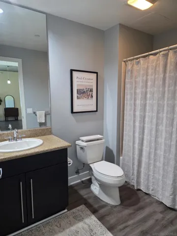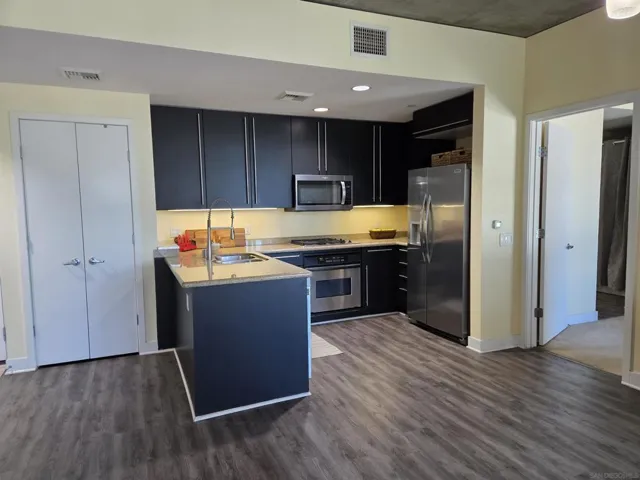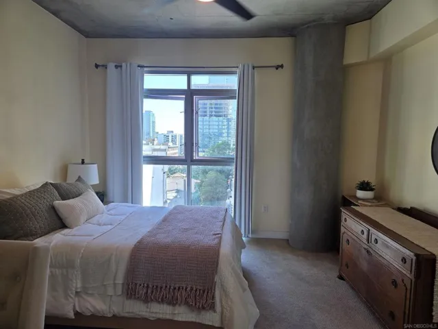 This beautiful, spacious and light-filled condo is located in the very walkable neighborhood of Cortez Hill, conveniently located on a hill in the northeast area of downtown with jacaranda lined streets, in the highly sought after Cortez Blu building! Cortez Hill is located within walking distance of Balboa Park, south of Banker’s Hill and east of Little Italy. Enjoy the city views from your private balcony or through the floor to ceiling windows in every room. There are newer, beautiful luxury vinyl tile floors throughout the main areas of the condo with carpet in the large master bedroom and second bedroom. The soaring cement ceilings and expansive windows compliment the gourmet kitchen with newer appliances and a large pantry. The kitchen flows freely into the expansive and open living spaces. The master bedroom has a large walk-in closet, en suite bathroom with dual vanities, a luxurious soaking tub as well as a separate shower. The second bedroom is a nice size with large windows and there is a second full bathroom close by, as well as a full size washer and dryer. The concrete ceilings and floors also provide a very quiet space for you to enjoy. There is one dedicated parking space, plus, for residents of Cortez Hill, additional permitted street parking is available for a $15 annual fee! Cortez Hill is a compact downtown neighborhood and is home to family-friendly restaurants, hotels and condo buildings. including the landmark El Cortez, a 1927 grand former hotel. St Joseph Cathedral dates from 1875 and features Mission Revivial-style architecture. Dotted with benches and whimsical birdhouses, Tweet Street Park is popular for strolls, while the sprawling and beautiful Balboa Park with its numerous museums and other attractions lies just to the north.