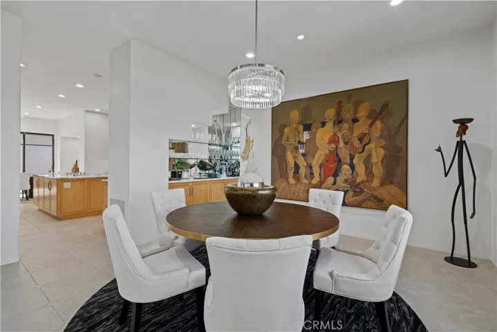 The spacious layout boasts a seamless blend of sophistication and comfort, featuring expansive living areas perfect for entertaining guests or enjoying quiet evenings with family. The gourmet kitchen is a chef’s dream, complete with top-of-the-line appliances, gas cooktop, built-in fridge, custom cabinetry, and a generous island for culinary creations. The center island is well located between a dining room area facing the pool and courtyard and a formal dining room facing the golf course views.