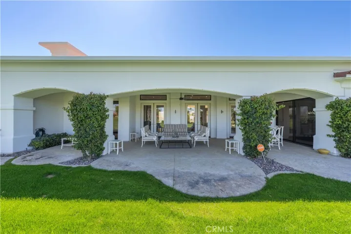 The three car garage has an epoxy floor. Embrace the quintessential desert lifestyle on your private patio overlooking the manicured fairways. Bask in the warm sun, dine al fresco under the stars, or simply unwind in the tranquil ambiance of your outdoor sanctuary.