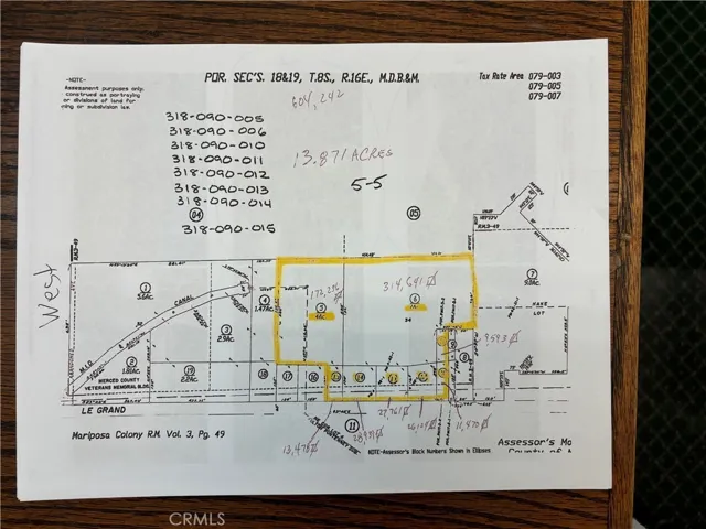 Iconic Historic Le Grand Treasure recently installed new Roof. 13.8 acres in producing Almonds with 8 separate APN’s. Statuesque craftsman farm home with lots of charm. 2 Bedrooms, 1 Bath 1,240 sq ft. Home is on approximately 7 acres. Property includes: APN 318090005 4 acres, APN 318090010 11,470 sq ft, APN 31809011 9,593 sq ft, APN 318090012 26,124 sq ft, APN 318090013 27,761 sq ft, APN 318090014 28,939 sq ft, APN 318090015 13,478 sq ft. Almond varieties Monterey & Carmel