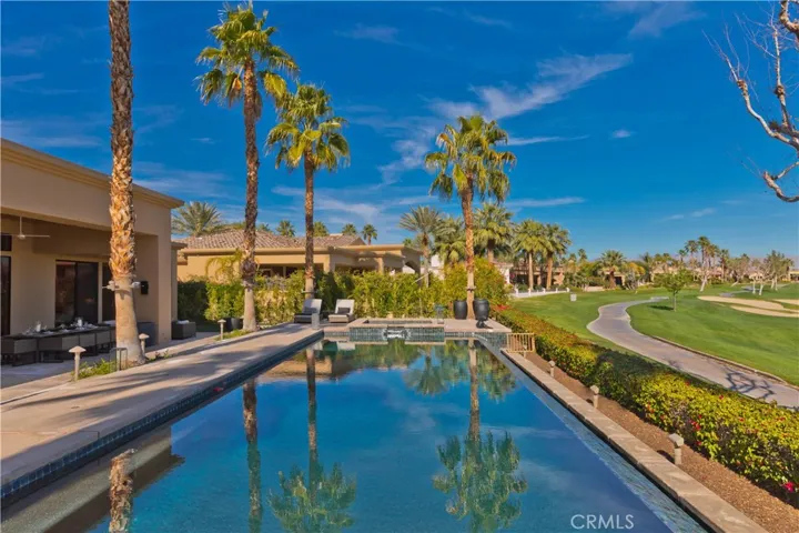 An estate of the grandest proportions awaits the discerning guest at “The Summit” in one of the most sought after and exclusive guard gated communities of PGA West. This home was recently featured on the first episode of the tv show Staycation which aired on CBS and KCAL 9. Its lake front facing exposures has it all with complete privacy at this 4-bedroom, 4.5 bath estate with triple fairway views of the 10,11,12th golf course holes on the Weiskopf course, lake and mountain views. Arrive, relax and begin to enjoy the 4900 sqft luxurious Restoration Hardware decorated home. This home was purposefully designed to create the ultimate vacation destination with premium amenities such as the infinity saltwater pool, cascading waterfall and spillway and spa, built-in BBQ island, foosball, ping-pong and more!