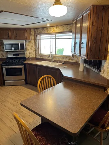 Very clean and well kept 2 bedrooms, 2 full baths in the desirable Gates of Spain Mobile Home Park. Large carpeted living room and dining room. Kitchen features nice formica counters, all Bosch appliances, ( refrigerator is GE ), with pantry. Kitchen flows nicely into family room with bar/ sink for entertaining. All new tile through out the home. Newly enclosed patio/sunroom with new slider, dual pane windows and floor. Very sizable master bedroom with cedar lined closets. Master bathroom with large soaking tub, dual sinks and separate shower. Laundry room with desk and closets. Covered front porch with mountain views and covered back patio with fenced yard for dog area. Come take a look.
