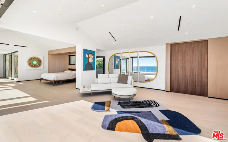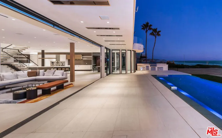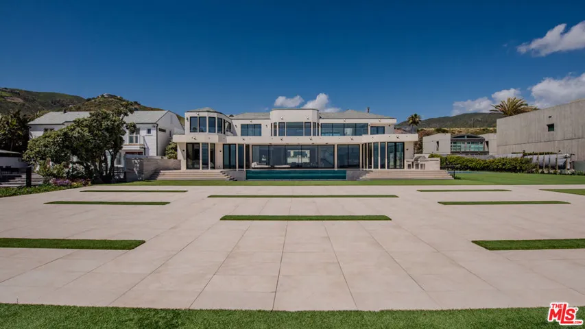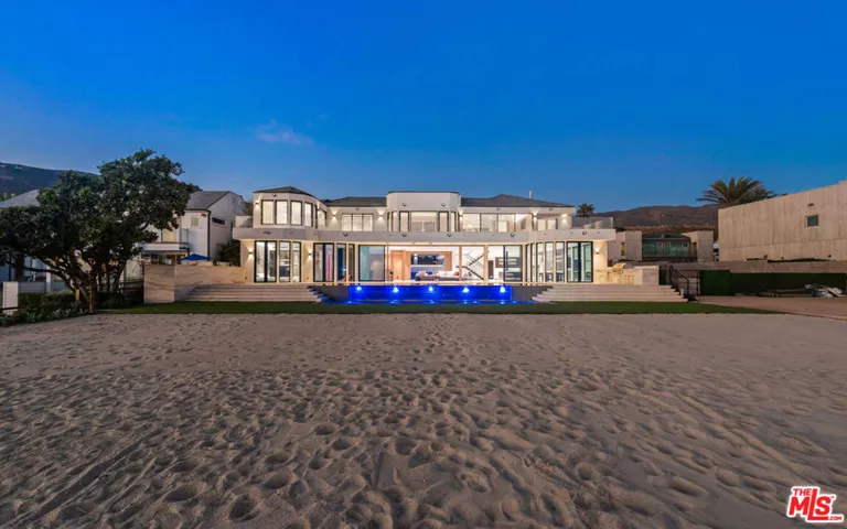 Welcome to your seaside paradise in Malibu! Nestled on nearly 3/4 acre of beachfront bliss, this exquisite property boasts an unparalleled location on Broad Beach. With over 7,600 square feet of luxurious living space, the estate comprises a Main House and a Guest House, ensuring opulence and comfort at every turn. The Guest House, a haven of sophistication, features 2 bedrooms, 2 bathrooms, a well-appointed kitchen area, family room, laundry room, and a security office with a separate bathroom. The main dwelling houses a total of 6 bedrooms, each equipped with ensuite bathrooms. The home’s lower level is an entertainer’s dream, with a family room featuring a bar, a spacious kitchen adorned with Gaggenau appliances, a dining room offering ocean-view seating, and a living area with a bar and wine closet. A Guest Suite, complete with a seating area, ensuite bathroom with a steam room, and direct access to the pool and beach areas, ensures a seamless blend of luxury and convenience. Upstairs, three secondary bedrooms with ensuite bathrooms, a den with a TV viewing area, and a main suite await. The expansive main suite encompasses a private office, sitting room, main bedroom, two walk-in closets, and a lavish main bathroom with a steam shower and soaking tub. A 1,000 sq ft balcony off the primary bedroom provides breathtaking 180-degree unobstructed ocean views. Completed in 2022, the residence is equipped with state-of-the-art electronics, security cameras, and alarm systems, all seamlessly controlled via a Control 4 app. The Family Room Theater features a 9’x18′ video wall with full multiplexing, allowing simultaneous viewing of four events. Outdoor amenities include a zero-edge pool with swim jets, jacuzzi jets, and a water wall in the main courtyard. The beachside entertainment area boasts a built-in barbecue, a 40′ infinity-edge pool with a Baja shelf, a dancing fountain, and over 6,000 sq ft of decking and entertainment space. Embrace coastal luxury and create everlasting memories in this Malibu masterpiece.