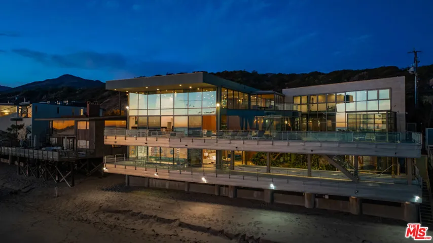 This exquisitely crafted residence is positioned upon an expansive double lot, boasting an impressive 128 feet of beach frontage. The residence is a marvel of architectural design, characterized by an open floor plan featuring lofty ceilings and expansive walls of glass that provide panoramic 180-degree vistas. The main level of this extraordinary abode encompasses a strikingly spacious master bedroom, occupying the entirety of the lower floor, along with three additional well-appointed bedrooms. An elevator facilitates convenient access throughout the residence, complemented by luxurious amenities such as a spa, extensive decks, and a distinctive round glass guest house. In addition to these remarkable features, the residence offers an indulgent Jacuzzi, a rejuvenating sauna, and an invigorating steam room. Furthermore, a fully-equipped gym adds to the comprehensive list of amenities, further enhancing the allure of this coastal masterpiece.