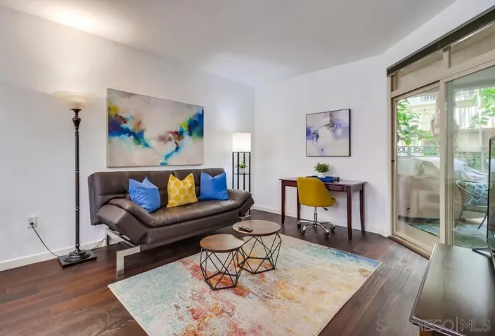 Welcome home to this FULLY FURNISHED, larger 1 bed / 1 bath, 721 sqft unit in the highly sought-after community of Piazza Palermo located in the charming Little Italy neighborhood. Piazza Palermo is a 6-story, mid-rise, secure building situated in a prime location that can’t be beaten. You will appreciate the spacious, light, bright & airy vibe throughout this residence. A full-size kitchen with granite counters provides the perfect space to whip up culinary delights and entertain guests. This home features a stackable washer/dryer in-unit, A/C, engineered wood flooring, and a balcony to enjoy peaceful, parklike views. Building amenities include a pool, spa, fitness center, and guest parking. Walking distance to everything: the wildly popular Little Italy Farmer’s Market, Waterfront Park, Seaport Village, Balboa & Petco Parks, Gaslamp Quarter, fantastic dining, cafes, bars, boutiques, and entertainment. Close proximity to the train, trolley, airport, beaches & more. Don’t miss the opportunity to call this residence home – bring your suitcase and experience the true magic of Little Italy living! We welcome all Dep’t of Defense (DOD) and we’d love to work with you, so if you’re looking for something different, please inquire about Downtown Condo Guys other listings.