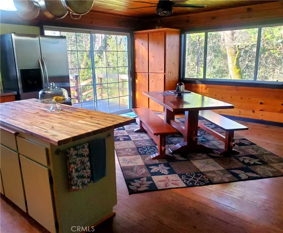 Seller to offer credit for rate buy down! This is the perfect mountain cabin at the end of the rainbow! Located near Yosemite, Bass Lake, the Sierra National Forest, and the Sierra Vista Scenic Byway, this home is perfect for outdoor enthusiasts of all kinds, or those who just want to escape the summer heat of the valley, or enjoy a bit of winter snow. This adorably updated hillside cabin has a bedroom/bathroom on each of its 3 levels, with a big back deck looking out over mountain views, a cozy propane woodstove, and the lovely rushing sound of nearby Prohibition Creek rising up from below. Wood floors, a skylight in the master bath, a wonderful window over the sink, an island kitchen, wood beam ceilings, and a lovely private wooded and mountain view out the back are just some of the things you’ll love. The main home is 2br/2ba, with a 1br/1ba suite downstairs with a separate entrance from the back of the house. The lower level has a remodeled bathroom with two partly unfinished rooms, perfect for creating an attached apartment with a little work, or use it as a yoga, art, or music studio, or a home work space. The main entrance is on the 2nd story, which is level with the front of the house, and upstairs is a large lovely master suite with a skylight in the bathroom. The kitchen, dining room and living room are on the main entry level (2nd floor). Located in Cascadel Woods, the home is at a higher elevation for cooler summers, and surrounded by USFS lands with trails, waterfalls, swimming holes and more! This neighborhood is in an expired HOA, and the County now maintains the 40 acre greenbelt (with pond, trails and swimming holes in Whiskey Creek, and the rustic clubhouse), paid annually in taxes for a nominal fee. Neighborhood roads are maintained by the water company.