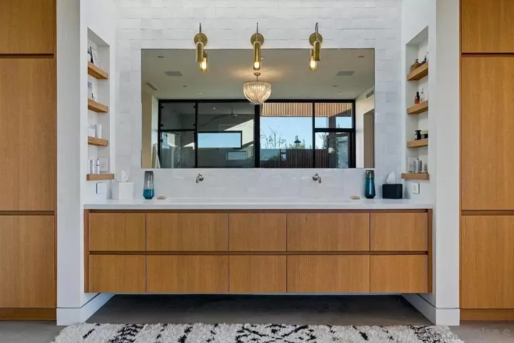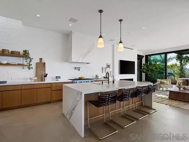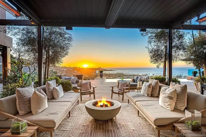 ONLY AVAILABLE FOR THE SUMMER. 1 WEEK AT A TIME OR THEN ENTIRE MONTH OF JULY.. Indulge in world-class escape to a realm of opulence and natural splendor in this unparalleled 6-bedroom, 8-bathroom estate, majestically poised above picturesque La Jolla Shores. Offering a symphony of architectural brilliance and refined elegance, this residence stands as a testament to the pinnacle of luxury living with unmatched, 220 degree views of the coastline. Amenities abound with the expansive outdoor paradise, gym and meditation sanctuary, inspiring home office, smart home technology, a chic teen lounge, and more. Every aspect of your stay at Vista d’Oro is meticulously curated to surpass expectations. ONLY AVAILABLE STARTING JUNE 28TH UNTIL JULY 28TH. SEASONAL FURNISHED RENTAL 7 NIGHT MIN Zen-like tranquility awaits as you step through the grand entryway and lounge-like living space, where warm, organic materials meld harmoniously with European sophistication. Complete with stunning bar, this stylish room leads to a wall of glass that unveils a captivating panorama of the boundless ocean beyond. With ceilings that reach for the heavens, a stunning staircase and a captivating catwalk bridge that gracefully links both wings of the abode, every detail exudes a sense of timeless magnificence. The gourmet kitchen is a masterpiece of culinary artistry where professional-grade appliances, top-tier finishes, a large island with breakfast bar, plus dining table for 8 guests, converge to elevate every gastronomic endeavor. Whether hosting a private chef affair or relishing in intimate family gatherings, the main kitchen seamlessly melds with a rear kitchen, ensuring no desire is left unfulfilled. Adjacent, the family room beckons with plush seating, a large flatscreen TV, ambient fireplace, and walls that fully open to the spectacular outdoor oasis. Gaze upon the expanse of the Pacific Ocean and take in phenomenal sunsets with seamless indoor/outdoor living. Step outside onto a jaw-dropping deck adorned with lush landscaping that rivals the grandeur of a five-star resort. Here, an infinity pool glistens under the sun’s radiant embrace, while a bubbling spa offers serenity and rejuvenation. Lounging upon sun-kissed day beds, you’ll be captivated by the breathtaking ocean vistas that stretch to the horizon. As evening descends, gather around the flickering fire pit or dine al fresco (seating for up to 12 guests) beneath the enchanting glow of market lights, enveloped in the gentle sea breeze. Additional amenities include a full-scale outdoor kitchen with BBQ, large, lit grassy soccer field, multiple lounge seating spaces with views, and outdoor shower with a serene bohemian vibe. Not to mention, there is a dedicated gym and meditation sanctuary for guests to find their center. Retreat to the sumptuous embrace of the primary suite, where a king bed, walk-in closet, and en-suite bathroom awaits amidst a backdrop of coastal splendor leading you out to a private balcony with forever vistas. Walls of glass frame panoramic coastal views, while the fireplace sets the stage for evenings of enchantment. Revel in the lavishness of the spa-like bathroom complete with dual vanities, a glass-enclosed shower, and standalone soaking tub. Step outside to your private outdoor shower and barrel tub that invites indulgence beneath the open sky. Each additional bedroom suite throughout the residence boasts an ensuite bathroom adorned with glamorous accents, ensuring that every guest enjoys the utmost in comfort and refinement. Elevate your once-in-a-lifetime vacation to the zenith of coastal luxury and embark on a journey of unrivaled sophistication in La Jolla. SLEEPING ACCOMMODATIONS (Maximum: 16 Guests) Upstairs: Bedroom 1 (Primary Suite): 1 King bed Bedroom 2: 1 King bed + 1 Queen bed + 1 twin trundle Bedroom 3: 1 Queen bed + 1 twin trundle Bedroom 4: 1 Queen bed + 1 twin trundle Downstairs Bedroom 5: 1 Queen bed Bedroom 6: 1 Queen bed