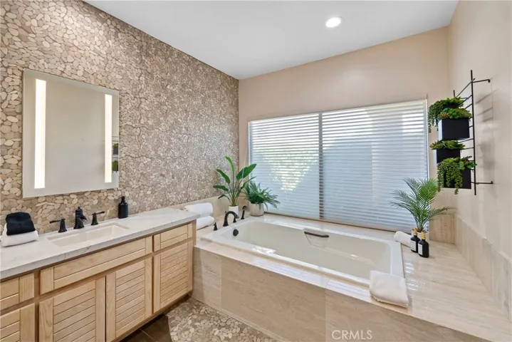 The fully remodeled kitchen showcases modern floating shelves and brand-new appliances, making it a chef’s delight. Each bedroom offers unique views: the first room overlooks the atrium, ideal for guests or as a home office; the second features a private bath with Jack and Jill sinks; and the primary suite boasts a spacious walk-in closet, a spa-like shower, and an oversized soaking tub with serene atrium views.