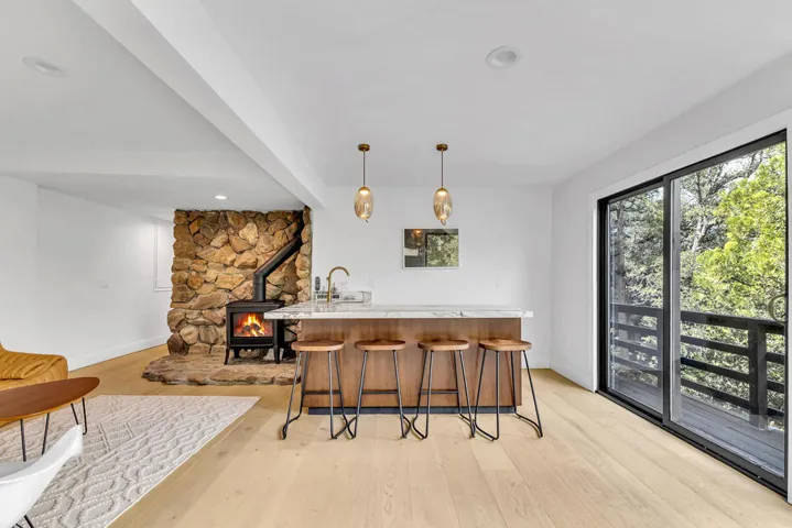 SPECTACULAR VIEWS AND TOTAL PRIVACY.! Enjoy amazing views and quiet solitude from this beautifully remodeled and upgraded home located on a quiet cul-de-sac street in the prestigious Double View Dr. area of Idyllwild. Dramatic interior spaces with beamed cathedral ceilings and walls of glass, highlight this 3 bedroom plus family room, 2.75 bath home. The central living area features great room with large lounge area and floor to ceiling painted brick fireplace, all new kitchen with appealing wood toned cabinetry, stunning porcelain counters, high end stainless appliances and central island with breakfast bar. A breathtaking all glass dining room has multiple picture windows framing the Mt. San Jacinto and Tahquitz Peak panorama. There are 2 bedrooms and 2 baths on the main level, including the primary suite with private bath and deck access. The lower level has a large family room/secondary lounge with refreshment bar, propane fireplace, 3rd. bedroom, 3rd. bath and laundry. There is wood flooring throughout, central heat and A/C, dual pane windows, multiple level decking and hot tub. Come experience this private view sanctuary, surrounded by nature, as only Idyllwild can offer.