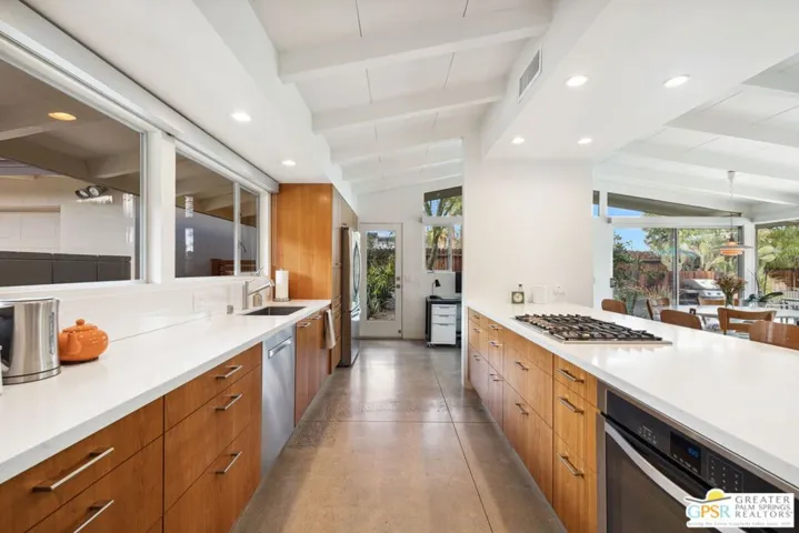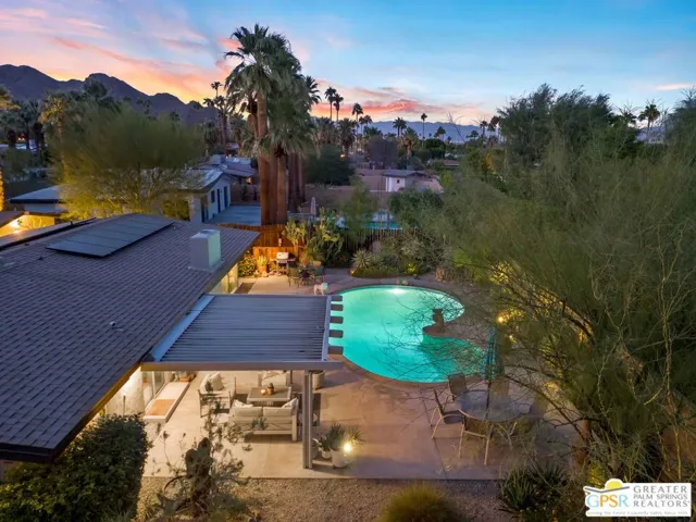 *** Monthly Rates: November to December: $6,500. January to April: $7,500. May to October: $4,500. Available: November 10th, 2025, through February 28, 2026, then again starting May 1st, 2026, through the rest of the 2026/2027 Season.*** Welcome to 71798 San Gorgonio, an enchanting mid-century modern gem in the heart of Rancho Mirage’s coveted Magnesia Falls Cove community. This fully renovated home captures the timeless elegance of mid-century architecture while offering thoughtful, modern updates, making it the perfect seasonal retreat for snowbirds and desert enthusiasts alike. The 1,243 sq ft interior features two usable bedrooms, two beautifully updated bathrooms, and an additional room permanently set up as a dedicated office, ideal for those seeking a workspace during their stay. While there is no true master suite, both bathrooms are conveniently located next to each other in the hallway, ensuring practicality without compromising the home’s classic charm. Every detail has been carefully considered to enhance your experience. The polished concrete floors lend a sleek, contemporary feel, while expansive floor-to-ceiling glass windows invite abundant natural light and showcase the breathtaking desert landscape. The kitchen is wonderfully appointed with updated countertops, modern cabinetry, and high-quality appliances, creating a welcoming space for preparing meals or entertaining guests. A decorative fireplace adds a touch of mid-century charm to the living area, though it is not operational and purely aesthetic. Outdoors, a private oasis awaits. The sparkling pool is the centerpiece of the backyard, offering the perfect spot to cool off on warm days or relax under the stars in the serene desert evenings. With eastern exposure, you’ll enjoy the gentle morning sunlight and magical moonlit skies, creating a truly tranquil environment. Please note that the pool does not include a spa, allowing the simplicity of the space to shine. Convenience meets sustainability in this home, with owned solar panels installed on the roof to help offset electrical bills. A detached two-car garage adds functionality, housing the washer and dryer for easy access. Whether you’re escaping colder climates or simply seeking a serene getaway, this home is a celebration of indoor/outdoor living designed to embrace the beauty of the desert. From its thoughtful layout to its timeless aesthetic, 71798 San Gorgonio offers the perfect blend of mid-century sophistication and modern comfort, making it a retreat you’ll never want to leave. Make your seasonal stay unforgettable in this one-of-a-kind property, where every detail invites you to relax, unwind, and experience the best of desert living.