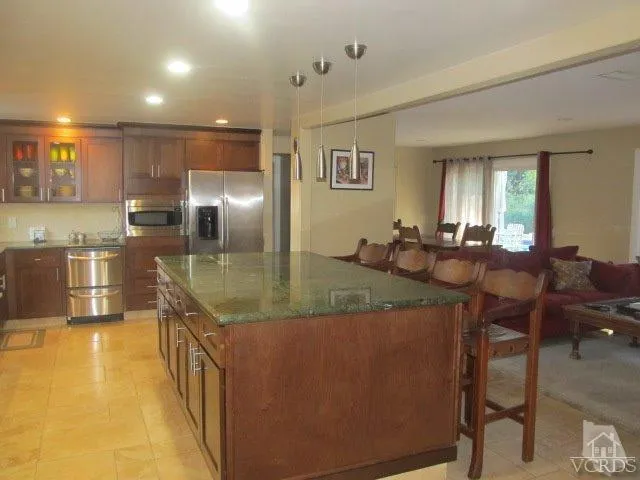 Las Posas Estates! Single Story 5 Bedrooms! This is Owner uses this home as a vacation rental during the summer.Fully furnished Single Story tropical pool home. Located on a cul-de-sac street in Las Posas Estates. Relax and enjoy inside and out. RV parking. Private back yard on 1/2 acre that backs to open space, a tree lined barranca that runs along a fairway of Sterling Hills golf course. Walking trails close by. This tropical back yard is lined with palm trees, heated swimming pool, built in barbecue, outdoor fireplace, large redwood deck, & a gazebo lounge. Great for entertaining family and friends. The large gourmet kitchen has top of the line appliances, granite, large island & built in wine cooler. Large Master bedroom has views and access to the peaceful outdoor setting. Master bath is designed with Quartz stone, roman tub for relaxing and a separate shower. Every bathroom has been upgraded with a unique design.Tenant pays utilities. Owner pays for landscaping & pool services. Ready November 1St to lease one year.