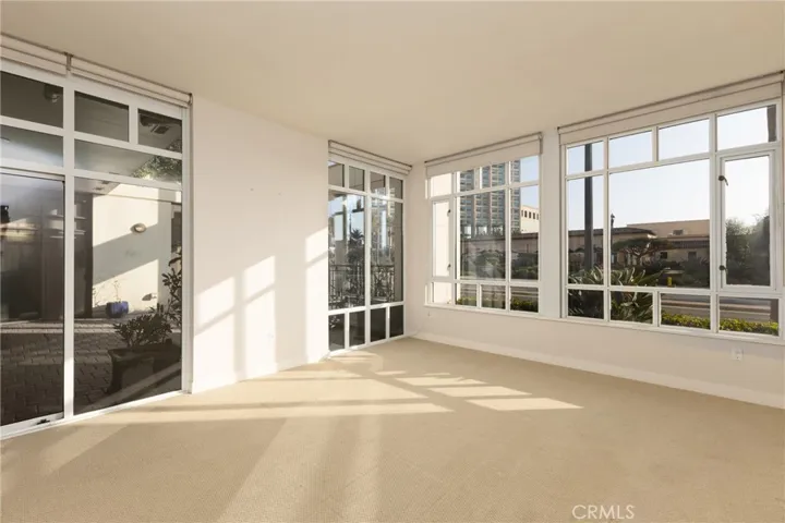 Elegant, stunning, single level, ground floor condo w/easy access to outside! 1639 square foot condo with expansive floor to ceiling windows affords abundant light and views from every room onto large, private patio complete with pavers, potted plants and city views where you can relax and enjoy all that Downtown San Diego, Marina area has to offer! Lobby is on same level and super convenient access for walks! 2 Bedrooms, 2 Bathrooms plus a Den/Office enclosed with wood framed glass walls, Living Room and Dining Room w/ elegant chandelier in a most sought after building with 24-hour full-time Security, Concierge, Guest Parking, Beautiful Pool and Spa as well as a well-appointed Fitness Gym INCLUDED IN YOUR MONTHLY HOA! Pets are welcome, 2 are allowed.