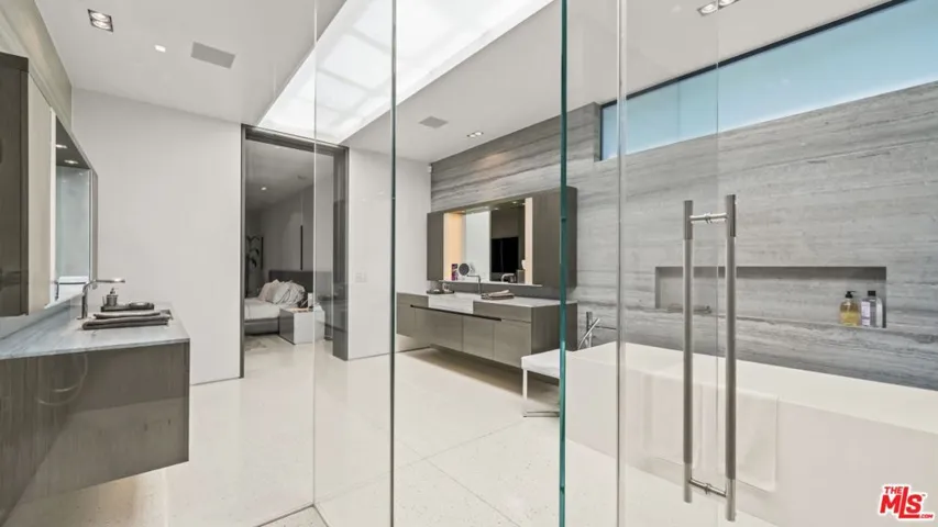 Extraordinary single-story Tennis Court estate on one flat acre in prime Royal Oaks. This newer build contemporary masterpiece is incredibly sleek and sexy-it truly is Trousdale in Encino. Custom architectural design has pristine Terrazzo floors throughout. Walled, gated, and surrounded by mature hedging, the home is set deeply off the street for maximum privacy and security. Perfect for sophisticated entertaining. Huge motor court for the car collector houses 8 cars, plus multiple additional spaces for guests. The gorgeous living room seamlessly flows to the chef’s kitchen with top-of-the-line appliances adjacent to an impressive dining room. Floor-to-ceiling glass Fleetwood doors which wrap around the sweeping property allow you to fully open and live your dream indoor-outdoor lifestyle. The main bedroom feels like the ultimate 5-star hotel suite. Gorgeous dual walk -in closets, black-out shades, radiant heated flooring in a bathroom flooded with natural light. A great media room, a voluminous wine storage room, and the separate guest wing accommodate a killer office and gym. The outdoor kitchen with covered patio features heaters and disappearing glass doors that make the entire property flow.