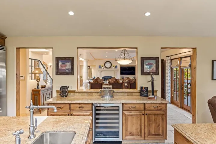 Welcome to 3116 Bird Rock Road, a stunning Mediterranean-style home in the heart of Pebble Beach. This elegant sanctuary, close to the ocean, trails, and MPCC, greets guests with a private gate, lush landscaping, and a grand entryway. Inside, the open floor plan offers ample space for entertaining. The ground floor features three bedrooms, while the luxurious owner’s suite upstairs boasts an oversized bedroom, a large bathroom, a walk-in closet, a private balcony, and an adjoining den. With approximately 3,600 square feet of living space, this home includes a gourmet kitchen equipped with a full suite of Viking appliances, a cozy family room, a large living room, and a spacious dining area perfect for large gatherings. Three fireplaces add warmth and charm throughout the home while wine enthusiasts will appreciate the temperature-controlled wine cellar. The expansive deck on the first floor is ideal for entertaining, with a fire pit, views to the golf course and ocean, and a large dining island. Whether you’re hosting a gathering or seeking a peaceful retreat, this home offers the perfect blend of luxury and comfort.