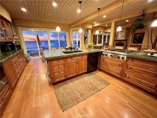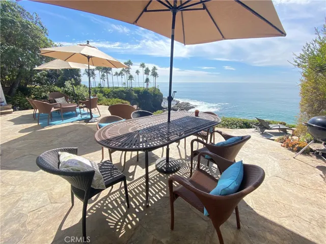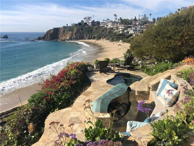 Turn-Key! Spectacular Ocean Front home overlooking Crescent Bay Beach. This “Direct Beach Access” property is situated in one of North Laguna’s most coveted locations. Spacious Living Room with fireplace features walls of glass overlooking panoramic coastline views. Step out to an expansive patio/yard area with an oversize (in-ground) jacuzzi spa with breathtaking views. The BBQ area with alfresco dining (table seating six and outdoor “living room”) is perfect for entertaining, complete with Firepit (with built-in seating) overlooking the crashing waves below. A private bluff-top cabana/beach cottage with a cozy fireplace makes an inspiring retreat. A great room with a wall of windows that pocket in on either side overlooks panoramic views of Crescent Bay. The gourmet kitchen with high-end appliances and central island is open-concept, allowing for mingling and dining with a backdrop of Catalina Island ocean views. Five large Bedrooms include an Ocean Front Master Suite with a wall of windows leading to heated decks. The spacious Master Spa/bathroom features an oversize jetted tub and a large steam shower. A separate (completely equipped) office, also with ocean views, makes working feel like a part of your vacation. Stroll along coastal bluffs (Heisler Park) to downtown shopping galleries and dining, or step down to the pristine cove beach. This turn-key rental is fully equipped for your perfect dream home away from home! Variable rate depending on term and season.
