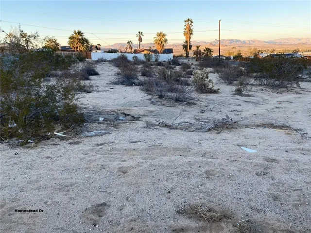 Amazing residential development opportunity on almost 1/2 an acre in Twentynine Palms….. corner lot with fire hydrant onsite. Endless possibilities with utilities on street. Only 1 block from multiple stores and restaurants. Views of Joshua Tree National park. Easy to get building permits from San Bernardino county can make your dream home become a reality in less than 1 year. Priced to sell. This lot is located next door to 73778 Homestead Dr.