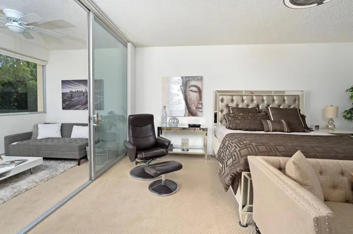 Home can be offered Furnished or Unfurnished! Luxurious 2-bed, 2-bath midcentury condo on the top floor of Seven Lakes Golf & Country Club available for long term lease. Over 1700 sq ft of living space in a private enclave overlooking the largest greenbelt, pool, and spa. Long-term lease available. Walk to renovated tennis/pickleball court. Spacious living areas with 10 ft sliders, integrated entertainment center, 65” TV, and WiFi Bluetooth audio. Wake up to mountain views, custom closets in bedrooms, and a private two-car garage. Architectural gem by Rick Harrison, steps from William Cody’s clubhouse and The Parker Hotel. Golf, pools, tennis – all in the exclusive 24-hour guarded and gated Seven Lakes community in Palm Springs!