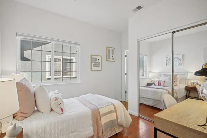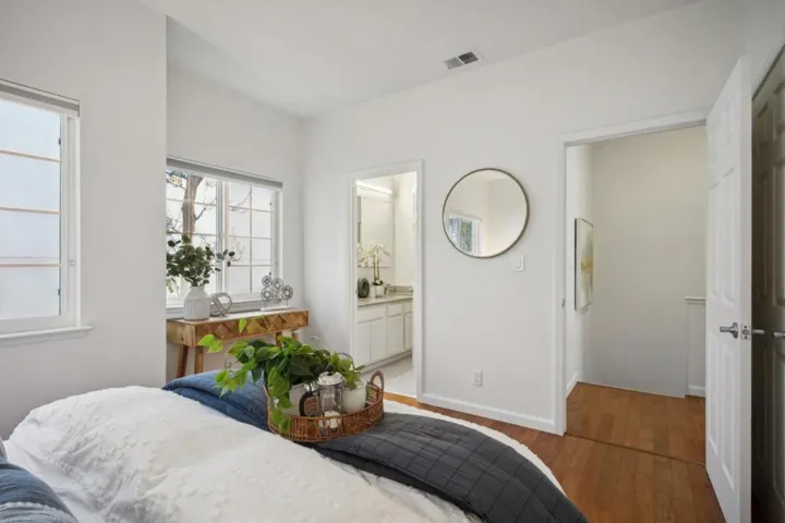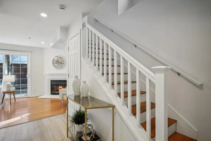 This corner-unit 2-story townhome is conveniently located halfway between downtown Burlingame and San Mateo. The main floor features an open combo dining/living area floor plan, a stylish kitchen equipped with stainless steel appliances, a fenced private-use patio, and a half-bathroom conveniently for your guests. The upper level consists of 2 spacious bedroom suites, each with its own private bathroom and in-unit washer/dryer. Other amenities include two assigned parking spaces, a secure bike room, and a manicured courtyard. Located close to shops, dining, local parks, FWY 101, and CalTrain Station, this townhome provides an unbeatable location for work, play, and everything in between. Schedule a tour today and discover your next home!