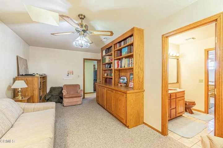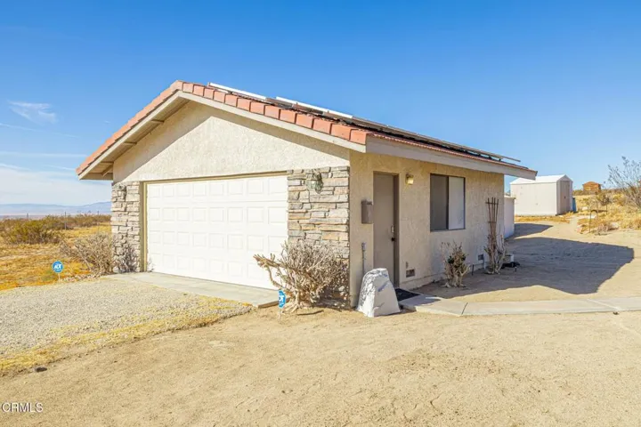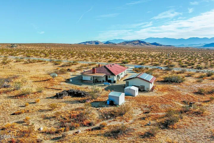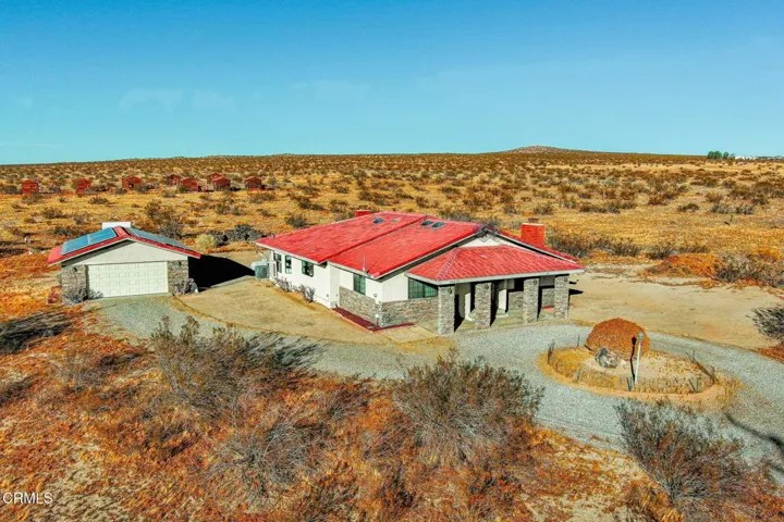 This beautifully custom built home rests on almost 10 acres of land in Lancaster, California. As you step inside this two bedroom, two and one half bathroom home, you are greeted by a spacious living room and formal dining room. The perfectly illuminated kitchen highlights the two ovens trimmed in brick, a four burner stove, dishwasher, a large island, oak cabinets, a built-in desk and parquet flooring. The primary bedroom features a brick fireplace, sitting room and walk-in closet. The en suite bathroom is complete with a built in dressing cabinet, jacuzzi tub, a separate shower and two vanities. There is a laundry room and a half bathroom at the rear of the home. In addition to the picturesque views, this property features a two-car garage with storage, 38 solar panels (fully paid), several out buildings with electrical and water, a propane tank and countless opportunities with its vast acreage of land.