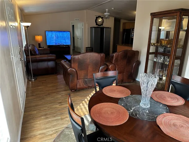 PRETTY DOUBLE-WIDE IN PICTURESQUE PANORAMA COVE 55+ COMMUNITY!! As you drive in, you’ll notice how quaint the community is. Notice you’re just steps away from the community clubhouse. At the home, you’ll be greeted by the front porch. Make sure to look up to admire the replaced roof! Walk into the home and admire the contemporary feel & how light and bright the large living room is. Flooring is wood laminate & some of the furnishings will be included in the sale. The room flows directly into the dining area. Adjacent is the central kitchen with the recently updated quartz countertops. The work area is spacious and bright. The refrigerator and range are newer and are included in the sale. Off to the side you find the laundry room, also with modern washer & dryer that are both included in the sale. The guest bedroom toward the front of the home is ample sized making it flexible enough to be an office or a guest bedroom. Toward the back you find the large primary bedroom with large closet & its own private bathroom with combo shower/tub. There is an attached carport for easy access to your car. Behind the carport you’ll find an approx 8′ x 8′ shed. Furnishings included are furniture along with two flat screen TVs. Additional features include updated water heater, Nest thermostat, updated roof, updated stands with earthquake bracing, earthquake gas shutoff valve, quartz countertops, recent appliances, updated exterior AC unit, and new HVAC ducting under home. Panorama Cove is a gated 55+ park and affords a pool and other activities at the clubhouse. This park is situated only minutes from Hemet, or out to Menifee and beyond. This wonderful home is being sold in As-Is condition. Submit an offer before this wonderful home is gone!