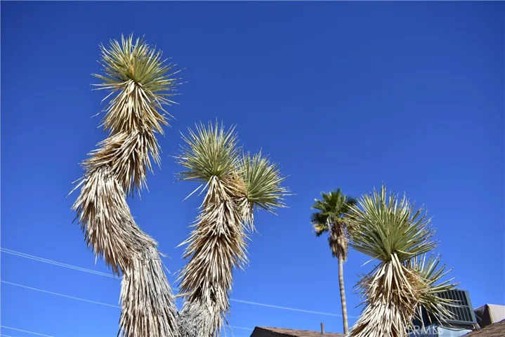 Enjoy the natural stonework throughout the back yard. Play horse shoes under light, barbeque, or relax in lounge chairs under a pergola. Sit around the fire pit or the outdoor table where you may open the large scenic gate to see the Joshua Tree basin or close it and enjoy the privacy walls and relax around several fountains of a desert oasis.