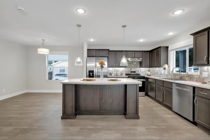 A Rare Find! Located in a quiet country setting in San Diego’s foothills is this Brand New 4 BR, 2 BA Cavco Durango! The home sits on a corner lot, close to the pool and clubhouse with no neighbor behind it. Neutral colors, built out porch columns and horizontal lap siding greet you upon arrival. A beautiful open floor plan with an island kitchen, upgraded baseboards, valances and hardware throughout. Stainless steel appliances, pendant lighting above the island, ample cabinets with ambience lighting underneath, pull down faucet and full tile back splash. Ceiling fans w/lights in the living room and all 4 bedrooms. Lovely primary bath with a step-in shower and dual sinks. There’s just too many upgrades to list!