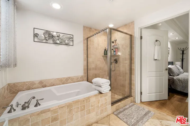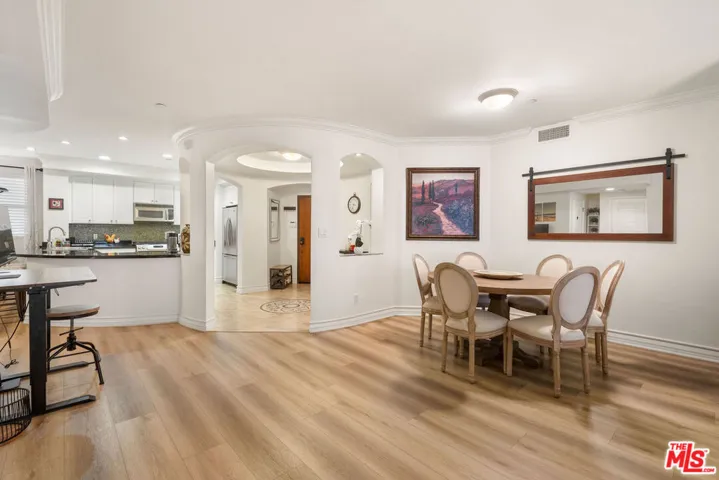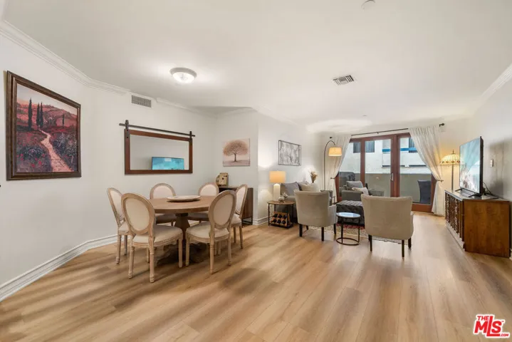 Welcome to a 1,552 sqft stunning unit in a premier courtyard building located on the sought-after Clark Drive. You are moments away from some of the city’s finest boutiques, eateries and coffee shops on Melrose Ave and Robertson Boulevard. Recently renovated, this unit features a split bedroom floor plan boasting 2 large-sized bedrooms with ensuite bathrooms and an additional powder room for guests, providing privacy for all. A circular entryway welcomes you into the living area and kitchen, creating a dramatic introduction to this wonderful home. The large dining room is perfect for entertaining, while the open kitchen offers a breakfast bar, making it an ideal spot for casual dining or socializing. The spacious den, anchored by a cozy gas fireplace, offers a warm and inviting atmosphere perfect for relaxing or to work from work. This unit also offers a private balcony, convenience of in-unit laundry and two secured garage spaces.The condo combines style and sophistication in a way that is rarely available in the market and is located in one of West Hollywood’s best location. Built in 2005 and updated in 2021, this residence encapsulates modern living at its finest. Welcome to your sanctuary in the city.
