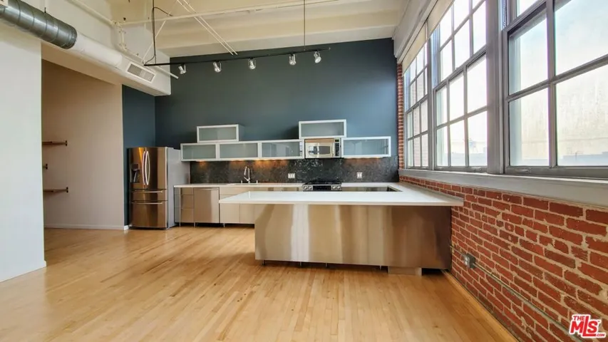 Located in the premiere Historic building in the Arts District, this 4th floor “Biscuit Loft” SW CORNER unit is sure to impress. Known as one of the BEST units in the building, the floorplan is unique and special. A long private entry hall leads to a massive space with soaring ceilings and cornered walls of windows that run the entire length/width of the unit. Flooded with light, stunning sunsets, and picturesque views of Downtown LA – means you may never want to leave home! Custom built kitchen includes upgraded quartz island, chic geometric stone back-splash, Refrigerator w/LCD screen, wine cooler, stainless steel cabinets, and high-end fixtures. Hardwood flooring combined with original terrazzo make an elegant statement. Custom office build-out and separated bedroom area allows for unique and private spaces within the unit, including two full baths. Electric solar shades, custom paint, and underground parking complete the package and make this a RARE FIND in an area bustling with excitement! Within a stone’s throw to many restaurants, art galleries, Soho House, new 6th St. Bridge, and numerous developments in the works! Most exciting area in DTLA and the perfect place to live/work. Community salt-water pool, BBQ, new outdoor furniture & lobby, Gym, and 24/7 security/concierge. 1 Secure Parking spot. 1 Storage Space. Gas/Water/Trash included. Renter insurance required. Unit not currently furnished.
