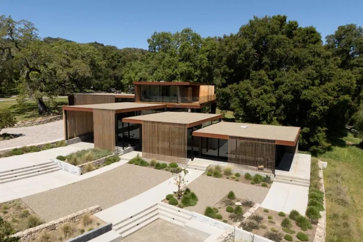 Discover a Contemporary Masterpiece at the Santa Lucia Preserve designed by Mark English Architects in 2020. The Meadow House stands as a testament to harmonizing modern luxury with the untamed natural beauty of The Preserve. Wrapped around an ancient oak grove in a Z configuration, the design preserves and honors the expanding meadow in the view. Expansive openings and massive retracting doors with deep verandas graciously merge indoor and outdoor living. The exterior palette of weathered steel and cedar battened screens soften the boldness of modern design in a wild setting, blending into the surrounding environs. The expertly appointed chefs kitchen with shoji sliding screens inspires entertaining on a grand scale while guests enjoy six ensuite bedrooms, two half baths and an additional full bath, a lower-level media room, a special yoga/meditation retreat and a separate guest house. The inspired living pavilion offers an intimate library and a sunken lounge for gathering amidst the mesmerizing views. The ultimate luxury of the Meadow House is the location in the heart of The Preserve community; live in nature and walk to dining at The Hacienda, Sports and Equestrian Centers or travel the abundant trails. A perfect balance of nature and lifestyle for the adventurous at heart.