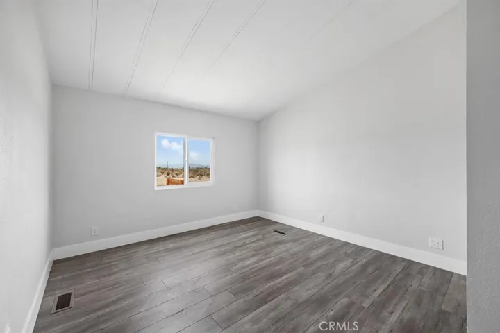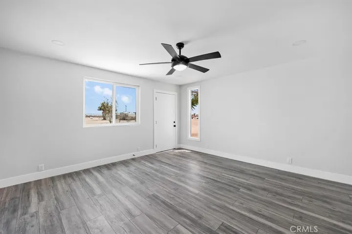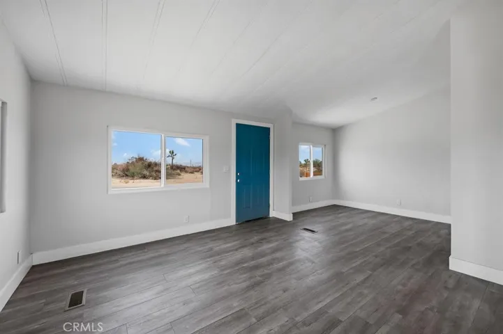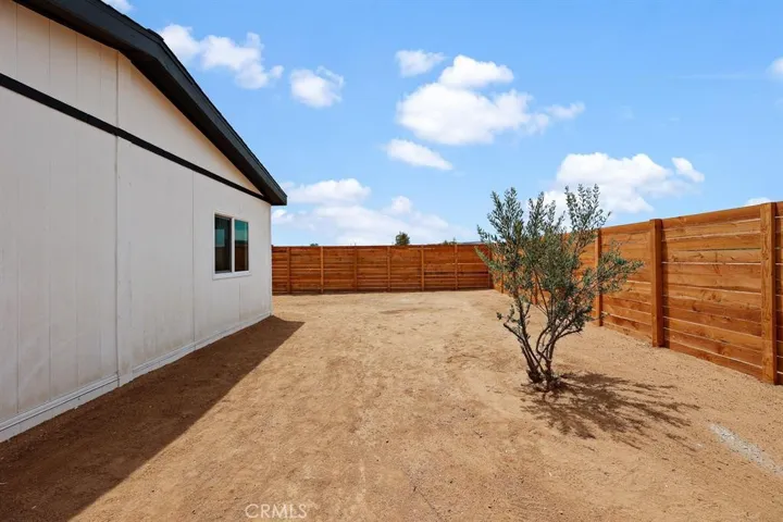 The second home is a double-wide mobile home on a permanent foundation, offering two bedrooms, two bathrooms, and approximately 1,050 square feet. A stylish horizontal wooden fence encloses the backyard, creating a private outdoor space.