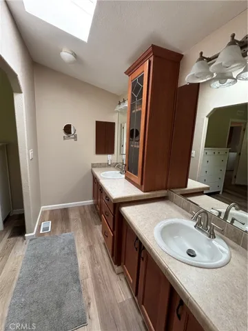 This bright and airy 2005 Cavco Manufactured home is stunning inside! A lovely 2-bedroom, 2-bath Cavco home features vaulted ceilings and drywall construction. The open layout includes a spacious living and dining area. Enjoy meals at the breakfast bar in the bright kitchen, which has a skylight and beautiful cabinets. The master bedroom suite has a large walk-in closet, and the master bath includes dual sinks, a newly remodeled stand-up tile shower with a seat, and handicap bars with dual shower heads. Beautiful white shutters throughout, covering dual-pane vinyl windows, allow you to control the amount of light. There’s a separate laundry room with a washer and dryer included.