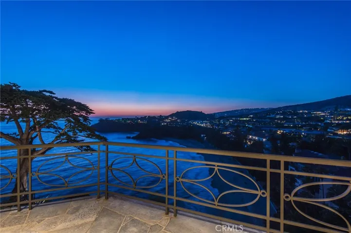 Perched atop a cliff in the prestigious enclave of Emerald Bay, this extraordinary estate, among merely three with direct private access to the waters below at Irvine Cove, offers boundless vistas of the ocean, Catalina Island, Palos Verdes and roaring whitewater just beneath you. Designed with intention to capitalize on both, the ever-changing views & privacy from neighbors, this residence occupies one of the most expansive lots within Emerald Bay as well as the Coast with nearly 100’ of frontage. Multiple terraces, mature landscaping, and a cove-facing hot tub were meticulously envisioned to maximize the natural slopes and endless views of crashing waves. A spectacular towering cypress greets you as you enter the estate while sea lions, dolphins, ospreys, yachts, and more entertain. A soft contemporary design intersects with functionality, resulting in inviting interiors that lend themselves to everyday living and entertaining. The different wings add privacy for family and guests. Soaring ceilings create voluminous spaces throughout the residence. Walls of glass opening to the terraces bring the Pacific Ocean and beyond indoors and it feels as if you’re sitting on top of the water. The muted palette of natural materials such as wood and limestone, curated to not compete with the coastal beauty, creates a soothing environment. Grand in scale, the main areas of the property as well as all bedrooms face outwards towards the multiple water-facing terraces. The owners’ suite spans nearly an entire level of the home, creating a private retreat with a spectacular view balcony. The rarity of this vastness while designed to optimize privacy from neighbors of this oceanfront estate cannot be overstated.