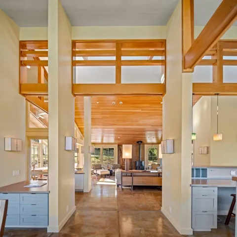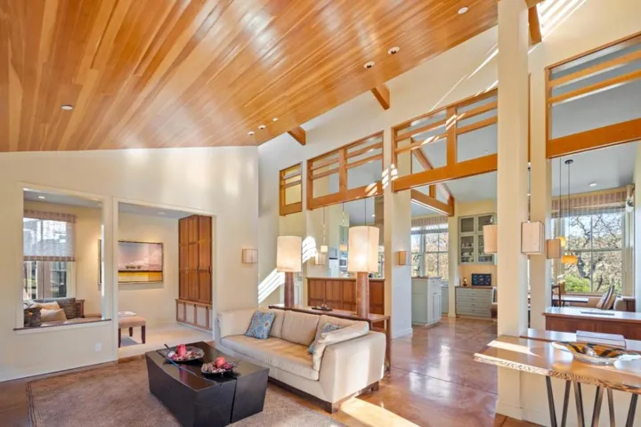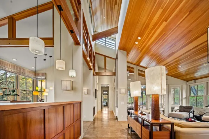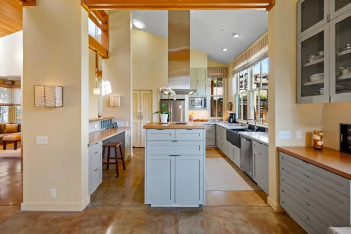 Experience a masterful fusion of Craftsman and Modernist design in this California Classic Ranch-Style home, nestled in the Santa Lucia Preserve community. Designed by architect Cathy Schwabe, this exceptional residence thoughtfully balances the coastal climate with the sun-filled days of The Preserve. Set on a stunning 30-acre parcel, the home seamlessly blends with its natural surroundings. The exterior harmonizes with the golden hues of the Savanna grasses, while the interior exudes warmth & charm. Waxed concrete floors and Douglas Fir ceilings showcase exquisite craftsmanship, with painted ceilings mirroring the sky and custom cabinetry reflecting the lace lichen of the surrounding ancient oaks. The floor plan is designed for effortless living. The west wing features a primary suite and an office/guest room, while the east wing offers two guest bedrooms and a shared bath. At the heart of the home lies a spacious communal area, including a sunroom that welcomes morning light year-round. The generous 3-acre building envelope offers opportunities for expansion allowing for a guest house, caretaker cottage, barn, outdoor living spaces, and a pool with breathtaking views. Embrace the lifestyle and natural beauty of The Preserve.This residence is more than a home – it’s a sanctuary
