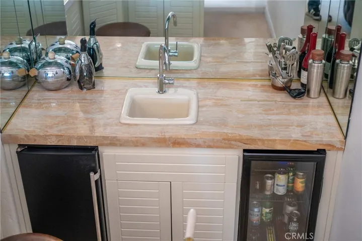 Spanning 3,314 square feet, the home greets you with an open-concept layout bathed in natural light. The chef’s kitchen features marble flooring, granite countertops, and premium Dacor appliances, while adjacent living spaces blend stone flooring and plush carpeting for warmth. Floor-to-ceiling glass sliders seamlessly connect the interior to an outdoor paradise, where a saltwater pool with a cascading waterfall, a heated spa, and a custom patio fireplace create an idyllic space for alfresco dining or sunset cocktails.